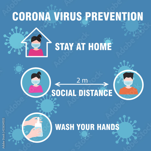 Infographic of prevention corona virus symbol ,Wash hands, avoid touching face, social distancing and stay at home