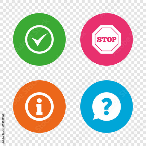 info, information, stop, prohibition, attention, question, check, mark, faq, confirm, yes, approved, inform, help, correct, tick, positive, checkbox, checkmark, speech, bubble, danger, support, ask, icon, signs, buttons, symbol, flat, label, token, shape, set, badge, app, vector, round, circle, design, texture, pattern, transparent, background