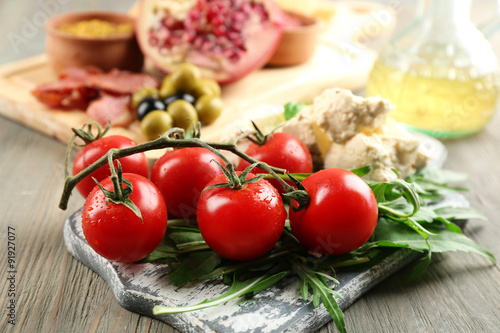 arugula, background, baked, basil, black, bread, cafes, cheese, closeup, cookery, culinary, dairy, feta, food, french, fresh, freshness, garlic, gastronomy, greek, green, grocery, ham, healthy, herb, ingredient, italian, meal, meat, mediterranean, natural, oil, olive, olive, pita, pomegranate, portion, product, prosciutto, red, eatery, roasted, rustic, salt, sauce, spanish, spice, tomatoes, wooden, deliciously