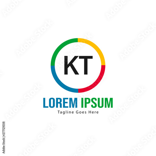 Initial KT logo template with modern frame. Minimalist KT letter logo vector illustration