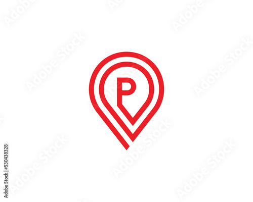 Initial Letter P Pin Location Logo symbol sign icon Element Design Line Art Style. Pinpoint, Locate, Place, Marker Logotype. Vector illustration template