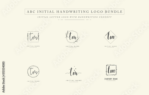 Initial letter T M TM bundle for identity and logo. Vector logo template with handwriting and signature style.