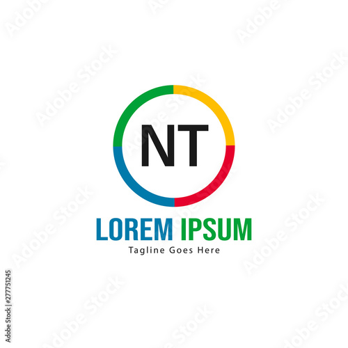 Initial NT logo template with modern frame. Minimalist NT letter logo vector illustration