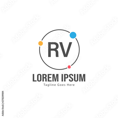 Initial RV logo template with modern frame. Minimalist RV letter logo vector illustration
