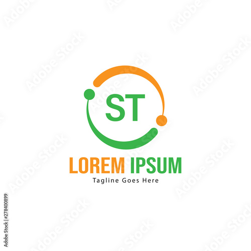Initial ST logo template with modern frame. Minimalist ST letter logo vector illustration