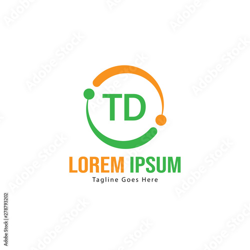 Initial TD logo template with modern frame. Minimalist TD letter logo vector illustration