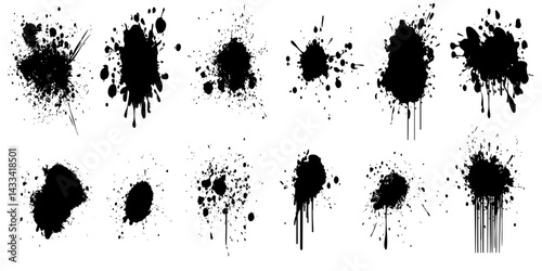 Ink splatters create dynamic textures for artistic designs or backgrounds