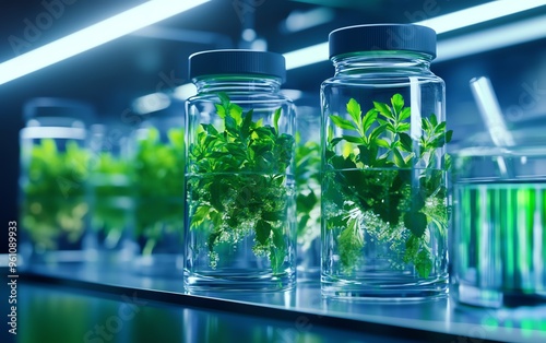 Innovative biotechnology lab with bioreactors cultivating genetically modified organisms
