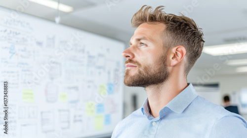 Innovative professional contemplating business strategies in modern office environment