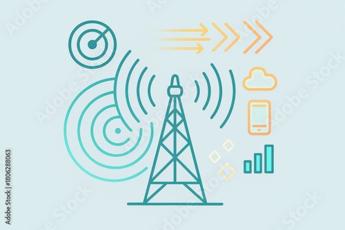 Innovative telecommunication design illustrating connectivity concepts featuring transmission tower and digital signals representing modern communication infrastructure