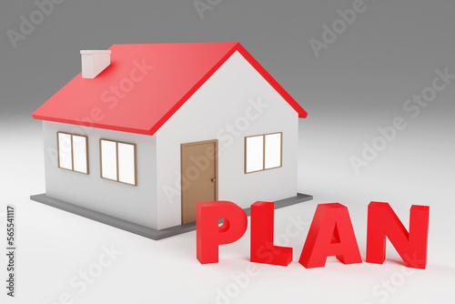 Inscription plan on grey podium, soft light, smooth background, 3d rendering