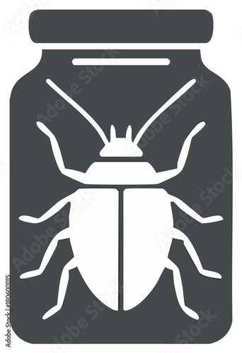bug, insect, beetle, jar, container, glasses, outline, isolated, vector, graphic, illustration, design, art, animal, wildlife, nature, entomology, pest, monochrome, grey, black, white, glyphs, silhouette, icon, concept, symbol, element, simple, cut-out, graphic design, arthropod, antennae, wing
