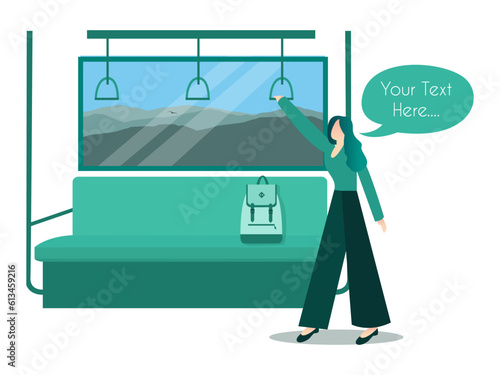backpack, bag, carriage, chair, comfortable, commuter, destination, electricity, fashion, fast, girl, green, handgrip, indoor, inside, interior, journey, lady, locomotive, baggage, subway, modern, mountain, passenger, people, public, railway, seat, speech bubble, speed, speeding, subway, technology, text, tour tourism, holiday maker, train, transport, transportation, travel, traveler, trip, urban, vacation, vector, vehicle, view, wagon, waiting, window