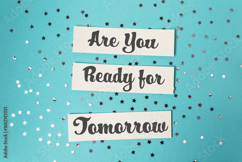 Inspirational message on paper strips with silver stars scattered on a vibrant turquoise background