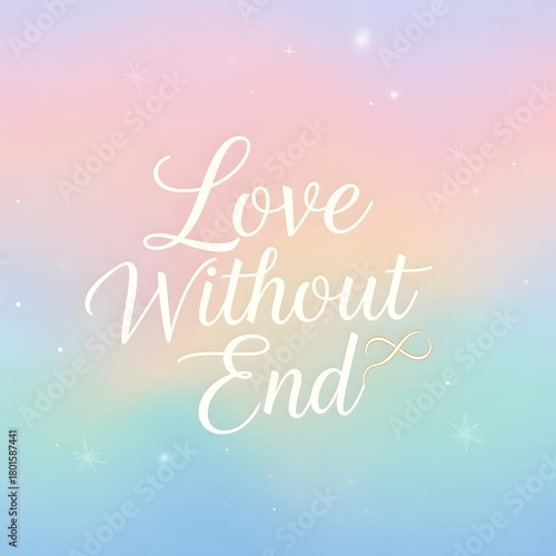 Inspirational quote with the phrase 'Love Without End' written in elegant white script on a pastel-colored background with stars and a dreamy atmosphere