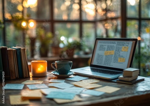 daylight, study, workspace, laptop, note, productivity, preparation, sharpened, quiet, tea, index, card, book, support, college, academic, desk, cosy, serene, peaceful, sunset, warm, ambience, relaxed, organised, scholarly, reflective, indoor, modern, minimalistic, brainstorming, handwritten, candle, wooden, natural, light, inviting, tranquil, educational, planning, strategy, thoughtful, stylish, paper, texture