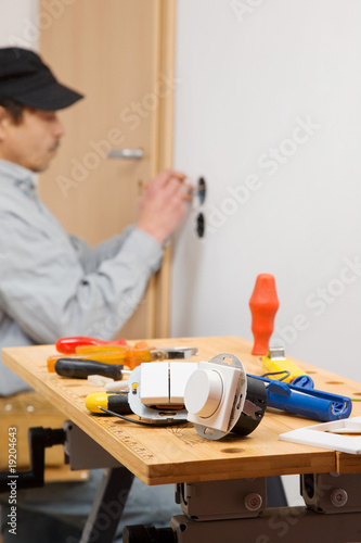 electrician, electrical, men at work, electric, power, switch, dimmer, building, room, workbench, frame, craftsman, working man, hand, mann, switcher, handcraft, handiwork, ruler, work, instrument, carpenter's shop, plier, screwdriver, tool, handle, door, interior, house, indoor, entrance, object, built, artifact, structure, wood, home, doorway, utility, knife, metal, residential, macro, equipment, shiny, concept, bright, closeup, metallic, action