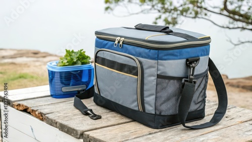 Insulated Cooler Bag on Wooden Surface