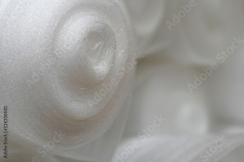 Insulation material insulation in rolls at a warehouse / building materials on shelves in a supermarket. Focus with shallow depth of field.