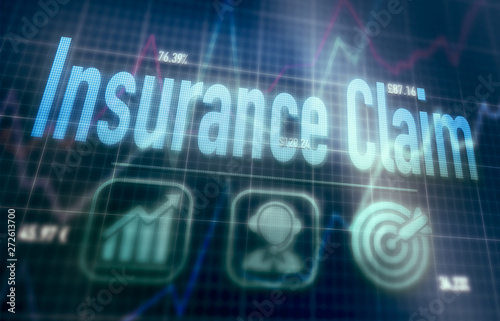 Insurance Claim concept on a blue dot matrix computer display.
