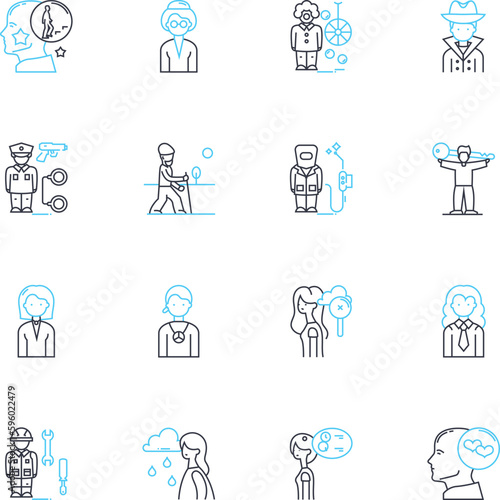 Integration linear icons set. Fusion, Synthesis, Unification, Convergence, Incorporation, Assimilation, Harmony line vector and concept signs. Combination,Amalgamation,Melding outline illustrations
