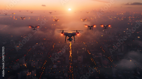 urban, drone, port, dusk, taking, off, landing, managed, system, efficient, safe, travel, metropolis, technology, infrastructure, transportation, future, city, automation, flight, logistic, delivery, modern, progress, tech, autonomous, navigation, systematic, orderly, organised, complex, dynamic, bustling, advanced, smart, unmanned, aerial, vehicle, powered, intelligent, transport, hub, digital, transformation, innovation, urbanisation, night, twilight