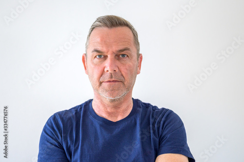 55, senior, background, copy space, determined, earnest, enigmatic, european, expression, expressionless, focused, intense, man, middle-aged, middle-aged, scrutiny, serious, solemn, stare, staring, stubble field, studio, unshaved, white