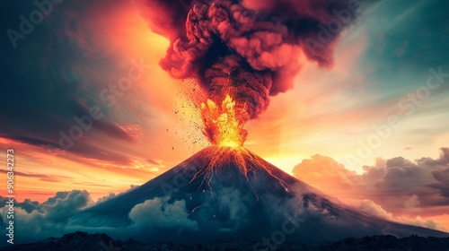 Intense inferno following a massive eruption, extensive wreckage and fiery destruction capturing the impact 8K , high-resolution, ultra HD,up32K HD