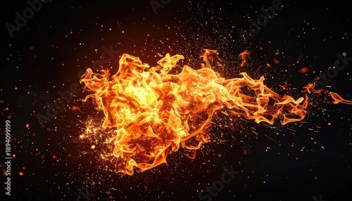 fire, flames, explosion, ember, spark, heat, burning, combustion, energy, intense, bright, orange, yellow, glow, light, abstract, dynamic, motion, swirl, vortex, black, darkness, background, wallpaper, texture, elemental, power, force, wildfire, blast, artistic, digital, render, graphic, design, hot, fiery, element, concept, danger, passion, destruction, warmth, flare, ignition, blaze