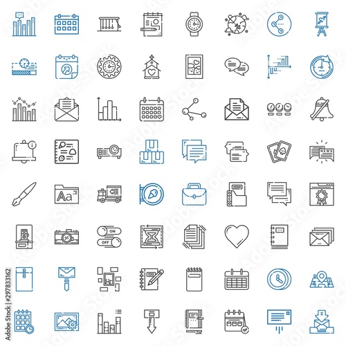 interface, icon, set, vector, electronic mail, message, calendar, notebook, download, bar, chart, image, schedule, map, clock, notepad, picture, mail, envelope, favourite, file, load, time, switch, photo, camera, browser, chat, folder, portfolio, signs, delivery, truck, font, fountain, pen, card, box, projector, menu, bell, share, church