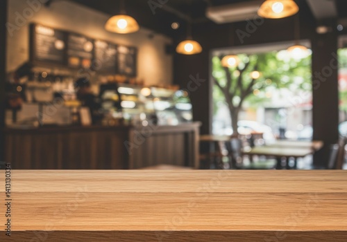 interior of restaurant mockup empty wooden table