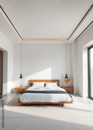 Interior room apartment bedroom with bed cozy place to sleep and relax Empty room interior design striking structures clean lines geometric shapes dramatic angl