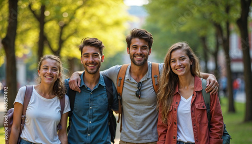vibrant, portrait, group, international, student, joy, camaraderie, park, face, happiness, diversity, city, studying, greenery, urban, element, harmony, background, sharpened, connection, blurred, depth, sunlight, tree, glow, cheerful, atmosphere, composition, space, text, educational, cultural, exchange, oneness, shared, life events, promotion, community, learning, togetherness, friends, smiling, friendship, together, student, teenage, youth
