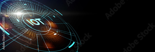 Internet of things - IOT concept. Businessman offer IOT products and solutions. The future of technology. Virtual screen of the future with the inscription: IOT. 3d illustration