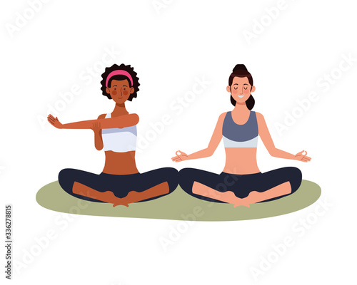 interracial girls athletes practicing exercise characters