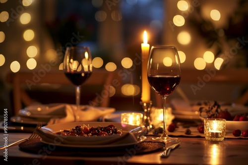 candlelit, dinner, table, elegance, wine glass, intimate, romantic, evening, fine dining, sophistication, gathering, warmth, decoration, candle, celebration, night, cosy, ambience, bokeh, soft light, formal, setting, place setting, napkin, plate, glassware, dinnerware, festive, luxurious, refined, atmospheric, sparkling, romance, event, private, culinary, mood, eatery, memorable, plated, epicure, aesthetic, tabletop