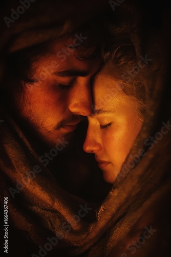 couple, hugs, love, intimacy, portrait, man, woman, eyes closed, fabric, warm, dark, lighting, emotional, human relationships, romance, affection, closeness, connection, together, face, skin, hair, light, shadow, brown, orange, texture, soft, gentle, peaceful, serene, calm, quiet, mood, feeling, passion, tenderness, caring, sharing, support, comfort, security, protection, trust, devotion, bond, friendship, companionship, partner