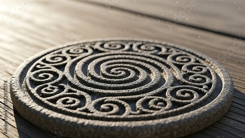 celtic, spiral, stone, coaster, design, pattern, ancient, symbol, ornament, carved, wood, rustic, texture, craft, art, decoration, circular, round, detail, closeup, shadow, light, surface, table, vintage, historic, culture, ireland, scottish, meditation, spiritual, abstract, geometric, traditional, hand-made, craftsmanship, engraved, relief, object, home, decor, gift, souvenir, heritage, mythology, pagan