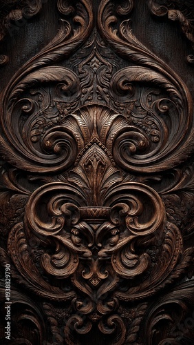 wood, carving, dark, brown, intricate, ornate, baroque, floral, scrollwork, antique, texture, background, pattern, detailed, luxury, traditional, vintage, gothic, classic, panel, surface, architecture, rich, shadow, craftsmanship, natural, material, sculpture, frame, aged