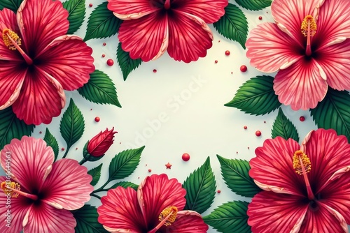Intricate hibiscus blooms, vibrant colors, repeating design, photography, exotic