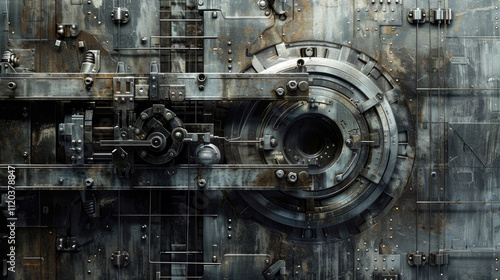 Intricate Industrial Metal Gear Mechanism with Rusty Textures and Complex Engineering Details in a Steampunk Style