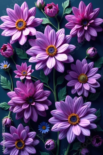 Intricate purple flower arrangement, artistic composition, textured layers , blossom, pretty
