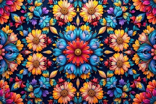 Intricate, repeating floral motif in vibrant hues , plant, design