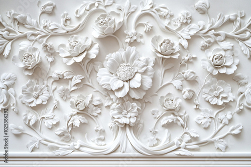 Intricate White Bas-Relief Floral Sculpture: A Delicate Masterpiece of Artistry Embellishing the Wall