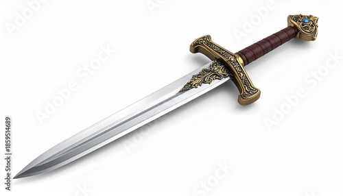 Intricately Detailed Fantasy Longsword with Ornate Engravings and Leather Wrapped Hilt Isolated on White