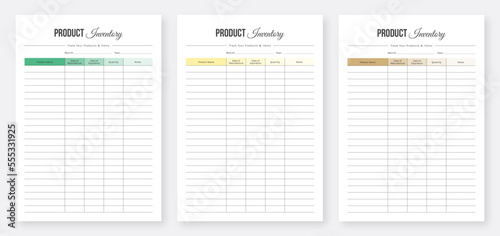 Inventory Logbook Tracker. Inventory Planner Template. Product Inventory Tracker. Product Inventory Management Tracker. Business Inventory Tracker Design. Set of Vector. Eps10 vector. Planner Bundle.