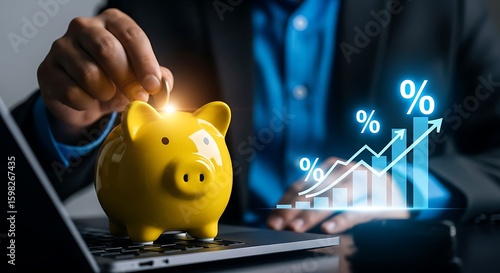 saving, investment, finance, money, bank, baby pig, coin, graph, percent, growth, economy, future, income, earning, wealth, success, business, chart, deposit, fund, budget, capital, currency, return, market, loan, portfolio, credit, accounting, risk, planning, management, increase, profit, prosperity, be of use, gain, revenue, value, stock