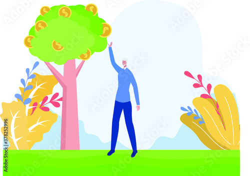 70s, abundance, achievement, aged, bank, banking, business, cartoon, cash, character, coin, currency, dollar, earning, economy, elderly, finance, financial, green, grow, growing, growth, happy, illustration, income, investment, leaf, male, man, mature, money, old, pension, pensioner, person, picking, plant, profit, prosperity, retired, retirement, rich, savings, senior, stock, success, taking, tree, vector, wealth