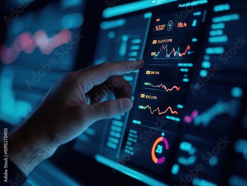 Investor analyzing sector performance within an equity fund on a digital dashboard, growth potential, diversified planning