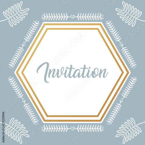 invitation card with diamond frame and leafs golden calligraphy